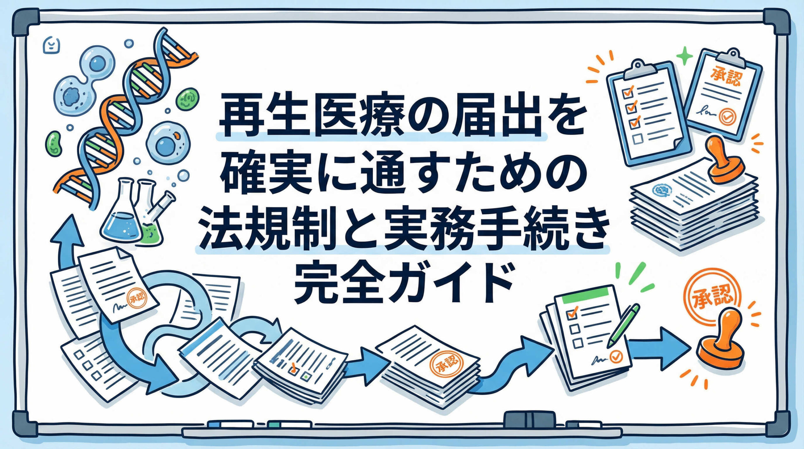 再生医療に関わる法規制と届出ガイドについて、法的な枠組みから具体的な手続きフロー、書類作成のポイントまで解説してきました。